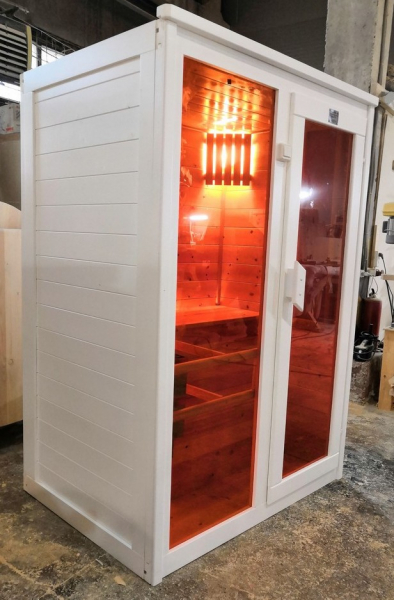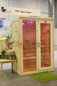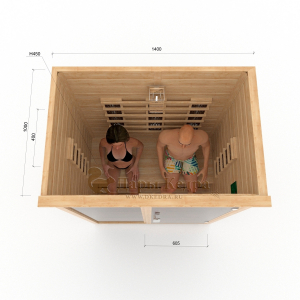 Это специально оборудованная кедровая кабина для прогрева тела человека сухим теплом. Воздух в таких парных не нагревается. Инфракрасные лучи воздействуют на тело, равномерно прогревая мышцы, суставы и органы. Керамические излучатели похожи на лампы, имеют высокую температуру нагрева, поэтому защищены противоожоговыми решетками. Тело человека в таких саунах нагревается интенсивнее. Работает кабина за счет электричества. Двухместная инфракрасная сауна с керамическими излучателями подойдет как для домашнего использования, так и для коммерции.
